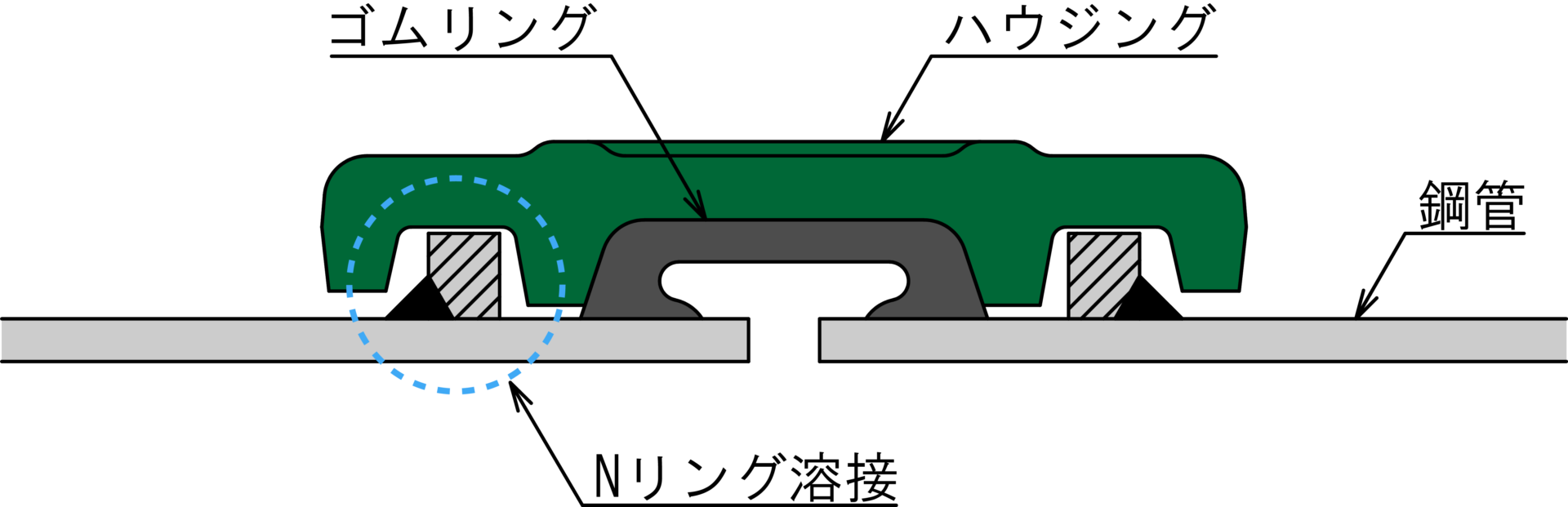 | 材質 | ハウジング:FCD450-10他 ボルト・ナット:S25C他 ゴム:SBR他 |